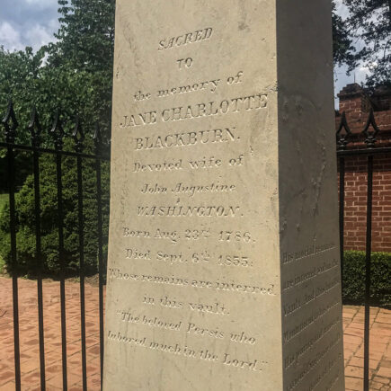 While on vacation we were walking among the family tombs at Mount Vernon, I was only half paying attention to the inscriptions when this one caught my attention, specifically that last line, which is a quote from Romans 16:12. This says, “Sacred to the memory of Jane Charlotte Blackburn. Devoted wife of John Augustine Washington. …