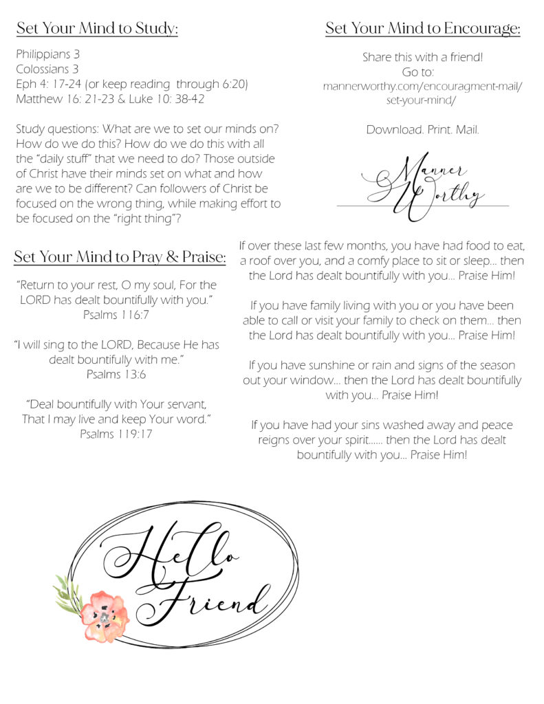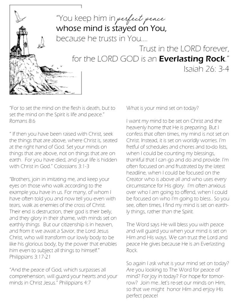 I often find my mind struggling to stay focused on what it should be focused on. So let’s encourage one another to set our minds on Christ…To put away the worries or distractions while we face the day before us.
